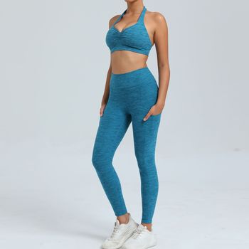 कस्टमाइजेशन यू बैक 2 पीस नायलॉन योग पुश ब्रा और उच्च कमर कोई फ्रंट सीम लेगिंग व्यायाम सेट